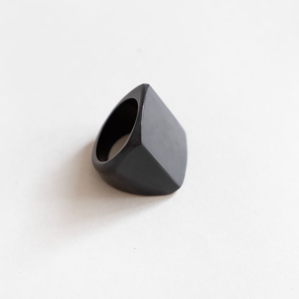 El anillo demuestra el dominio de la técnica de tallado de cuerno por los artesanos y las cualidades del material recuperado que tiene una translucidez única. Las tonalidades varían desde el negro hasta el ámbar. SKU: TAMJOCUAN21998