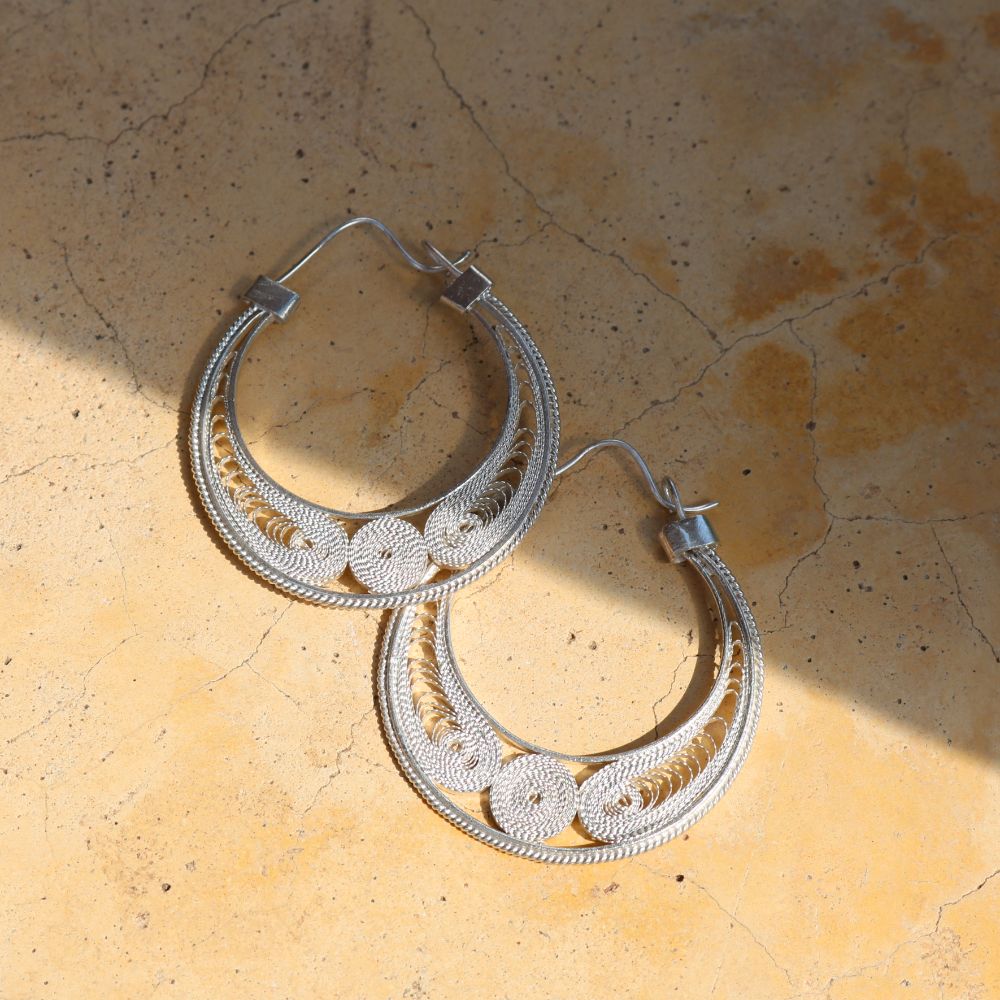 Las arracadas Santa Rosa presentan patrones inspirados en la naturaleza y están creados con sutiles filamentos de plata y oro que se funden entre sí para formar elegantes figuras. Por el color del metal, estos aretes combinan perfecto con cualquier tipo de atuendo de tonalidades neutrales u oscuras. Cuidado: Se sugiere limpiar con un paño seco. Producto sobre pedido Tiempo estimado de producción: 40 días.