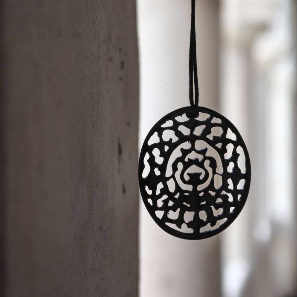 El collar demuestra el dominio de la técnica de tallado de cuerno por los artesanos y las cualidades del material recuperado que tiene una translucidez única. Las tonalidades varían desde el negro hasta el ámbar. SKU: PRMJOCUCL02998