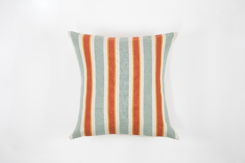 Este cojín hecho en telar de cintura maya con hilos de algodón, representa los patrones del polen en la naturaleza. Sus colores lo hacen llamativo y atemporal. Una obra de diseño artesanal imperdible.
