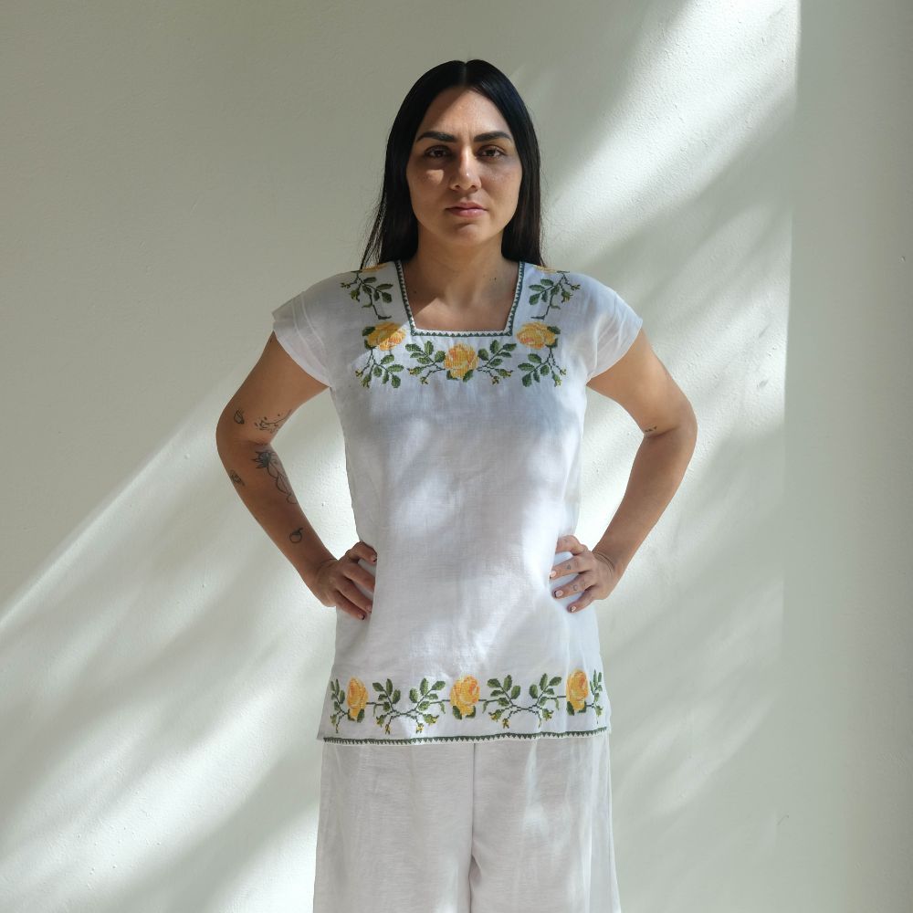 El bordado a mano se originó en tiempos prehispánicos en México y se transformó durante la época Colonial, cuando se aprendió de las mujeres españolas la técnica de punto de cruz. Esta técnica se utiliza para bordar elementos de la naturaleza en colores llamativos.