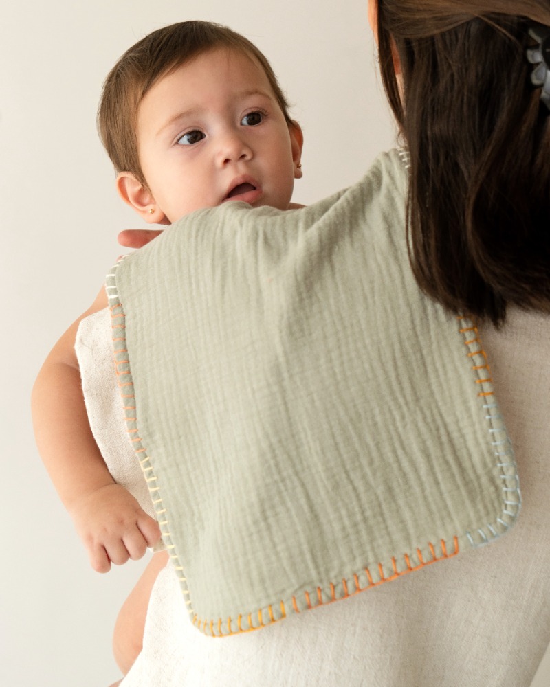 San Antonio Chun, Yucatán El Repetidor Polen honra el delicado equilibrio de la naturaleza a través de colores inspirados en las naturaleza que rodea a las abejas meliponas, guardianas del territorio maya. Cada pieza transmite un acto de cuidado que conecta lo cotidiano con lo ancestral. Confeccionado por artesanas de San Antonio Chun, es suave, absorbente y lleno de significado. Perfecto para acompañar la rutina diaria con belleza y funcionalidad. Color: Verde sage Técnica artesanal: Bordado a mano Materiales: Baby cotton y toalla azteca Medidas: 56 x 75 cm SKU: TAMNICOMN02501